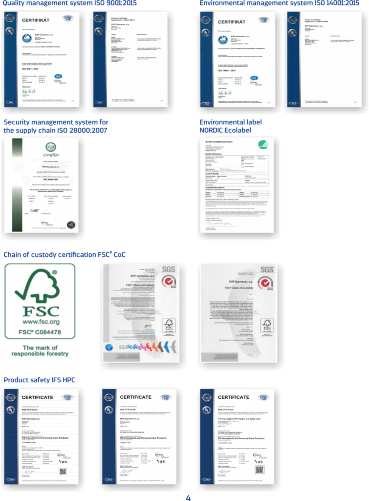 The basic pillar of the company is wholesale and retail of paper and paper hygiene. Our partners are Mondi SCP a.s., SHP Group and Metsä Tissue. They are major European companies with a long tradition and experience in the production of paper, toilet paper, kitchen towels, napkins ,handkerchiefs and facial tissues of high quality at an affordable price. Throughout the process – from tree felling through production and distribution to product disposal, modern technologies and procedures are used that meet demanding EU criteria with regard to environmental protection. The products have been awarded the EU Ecolabel, recognized worldwide, for products and services that meet high environmental standards. As a result, there are fewer CO2 emissions from production and durable, easy-to-repair and recyclable products.